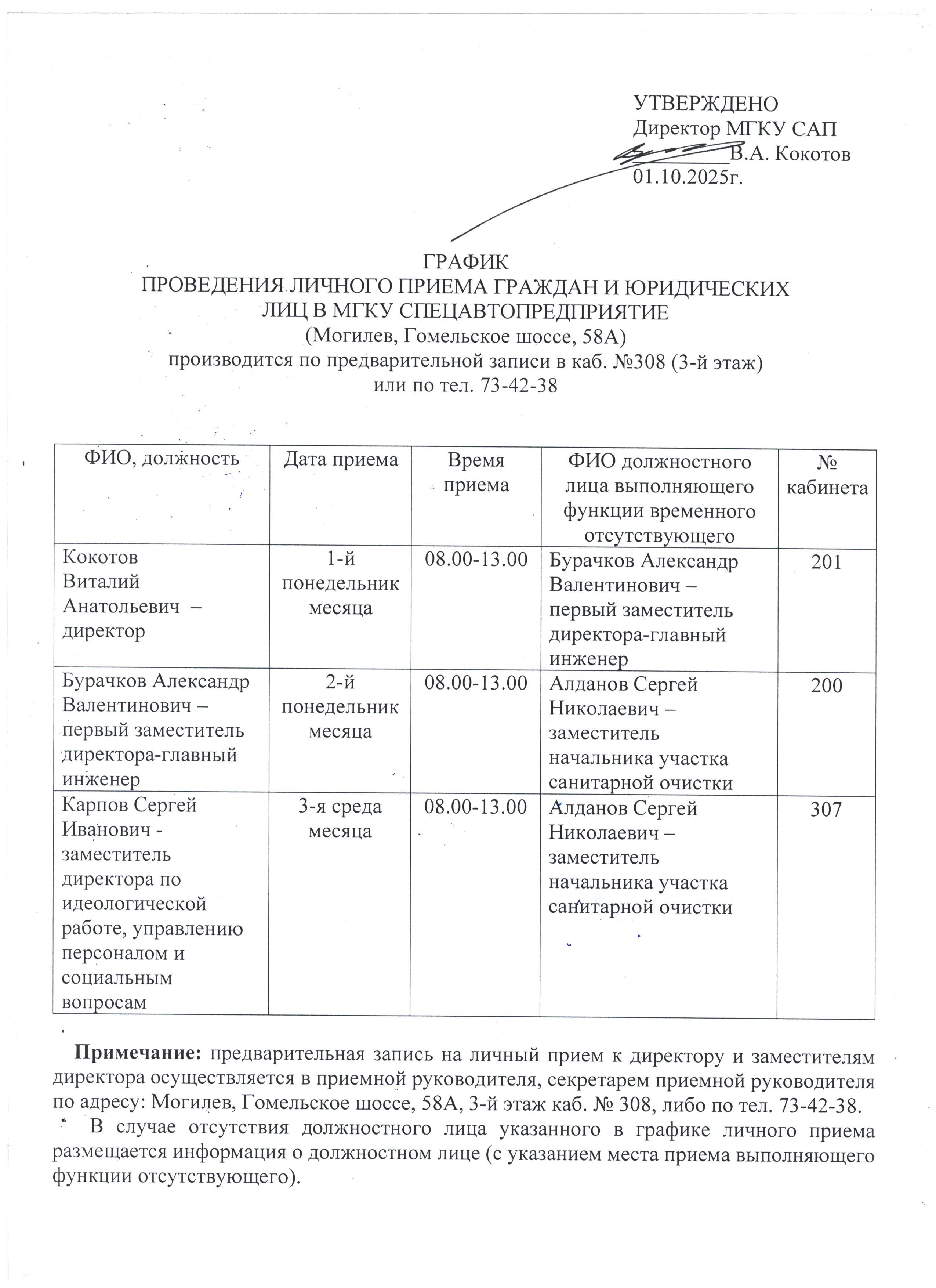 График приема граждан, индивидуальных предпринимателей юридических лиц в МГКУ САП